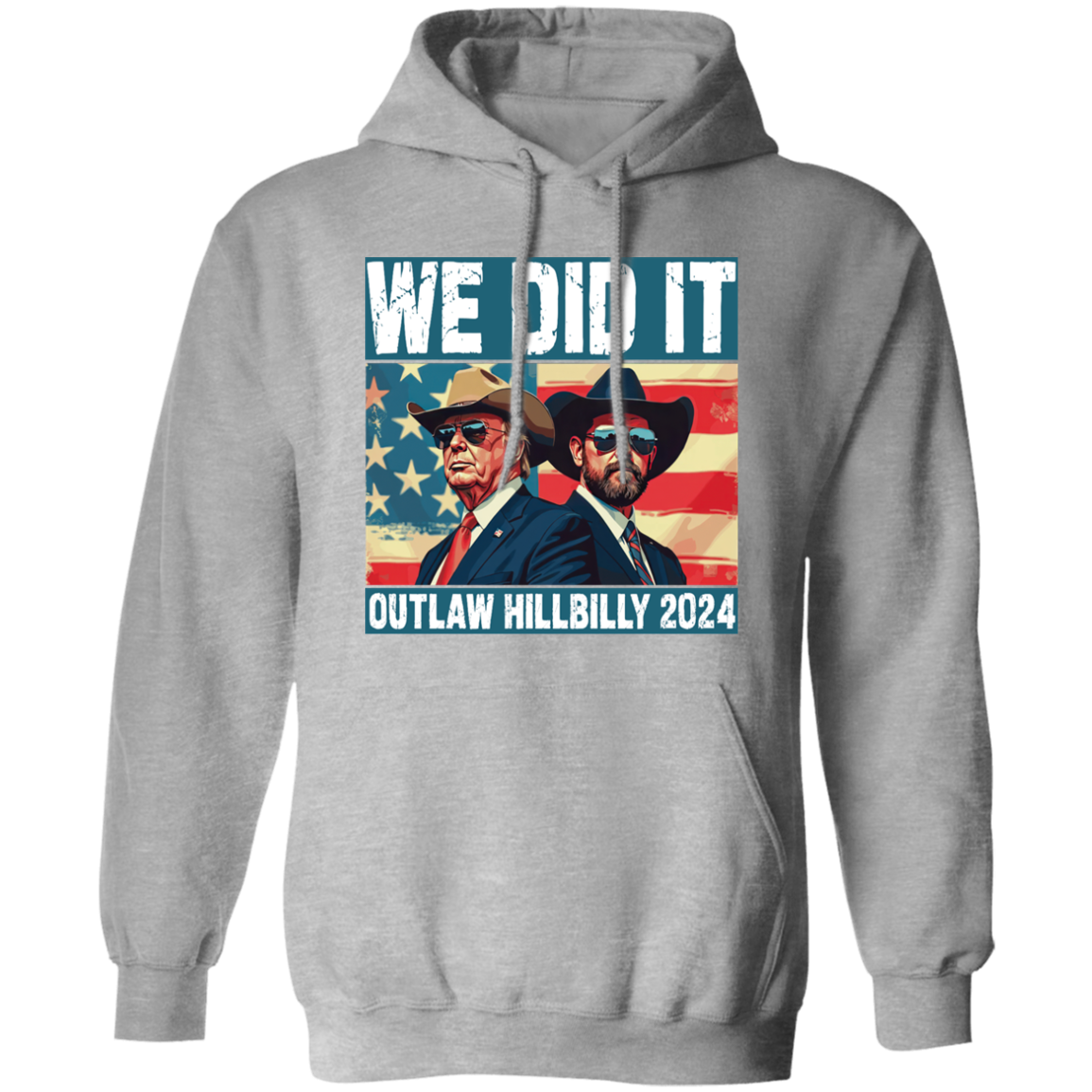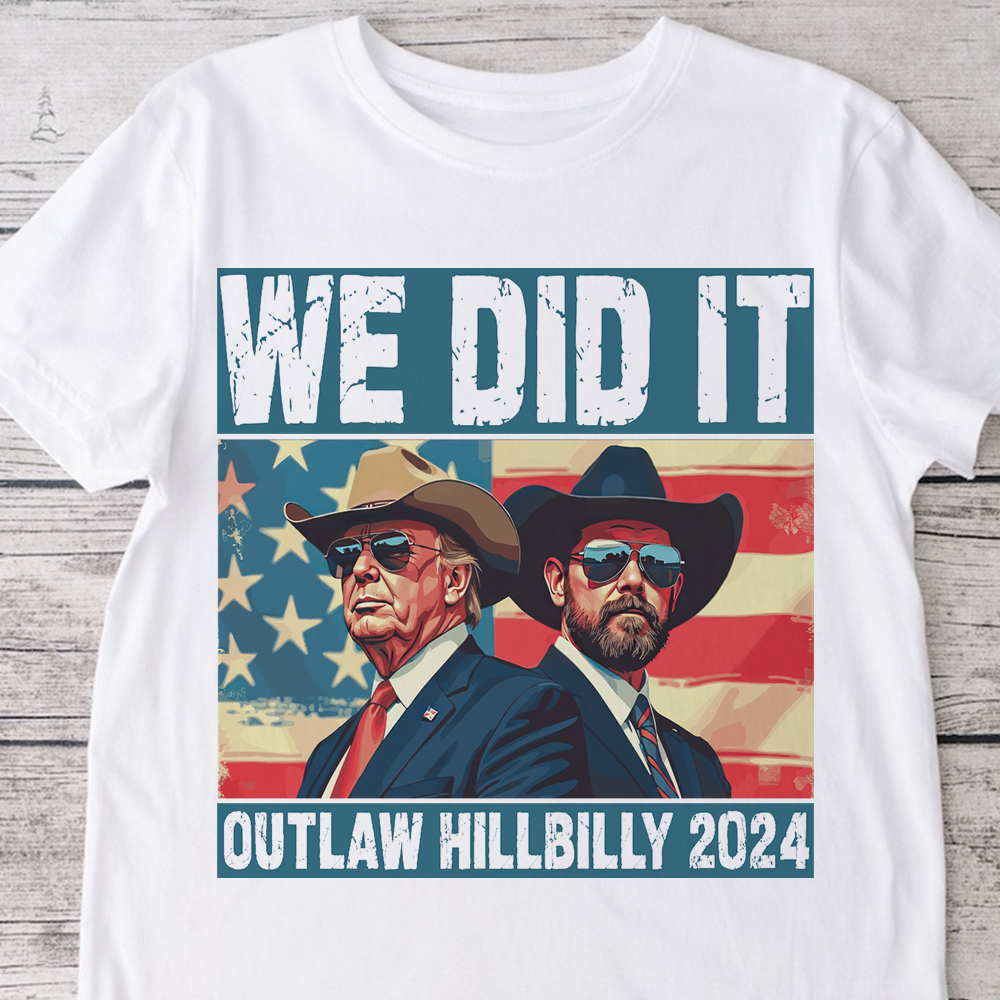 Boost your confidence with the We Did It Outlaw Hillbilly 2024 Trump Vance shirt. Show your support for the Trump Vance campaign, while also showcasing your unique and rebellious style. Perfect for any proud American looking to make a statement.