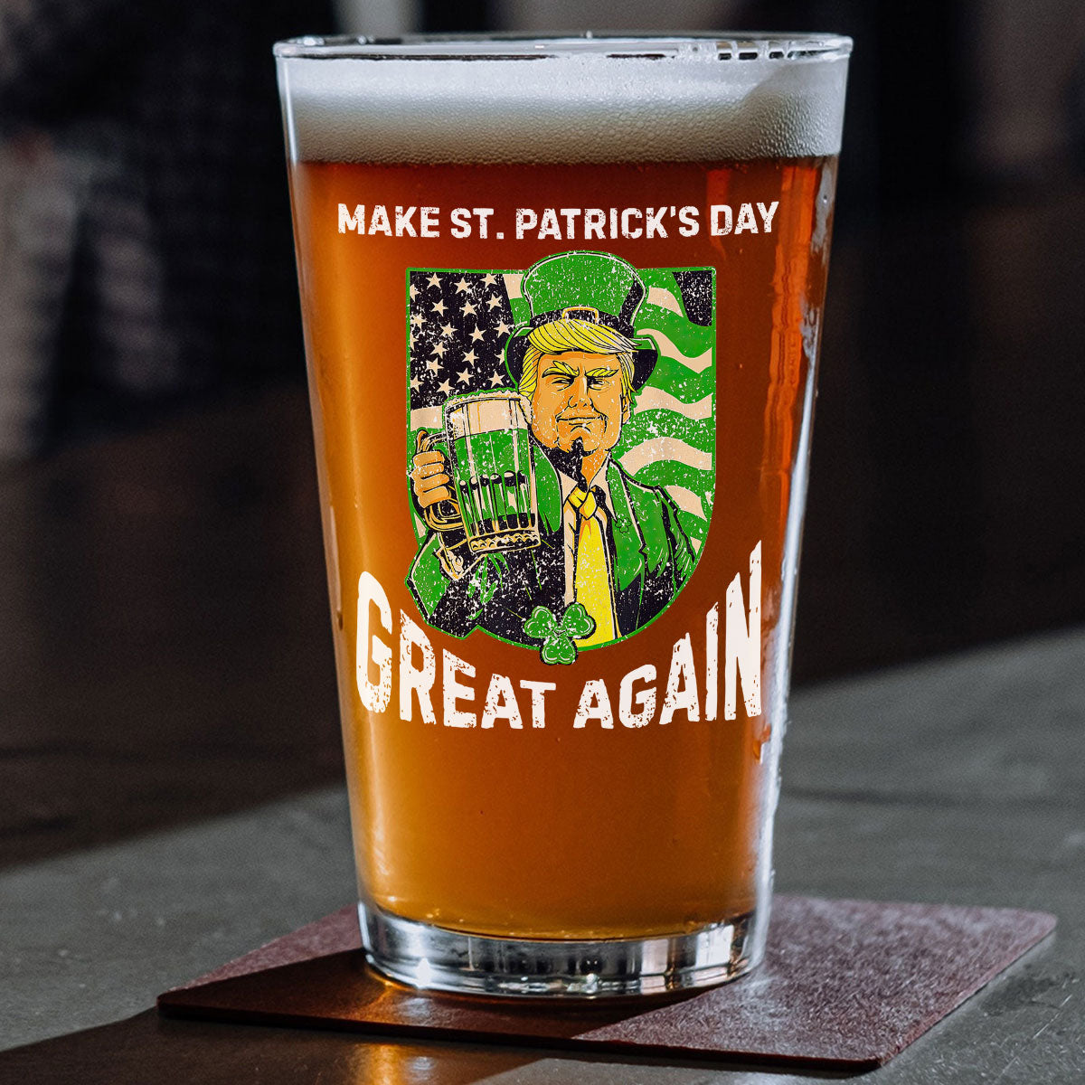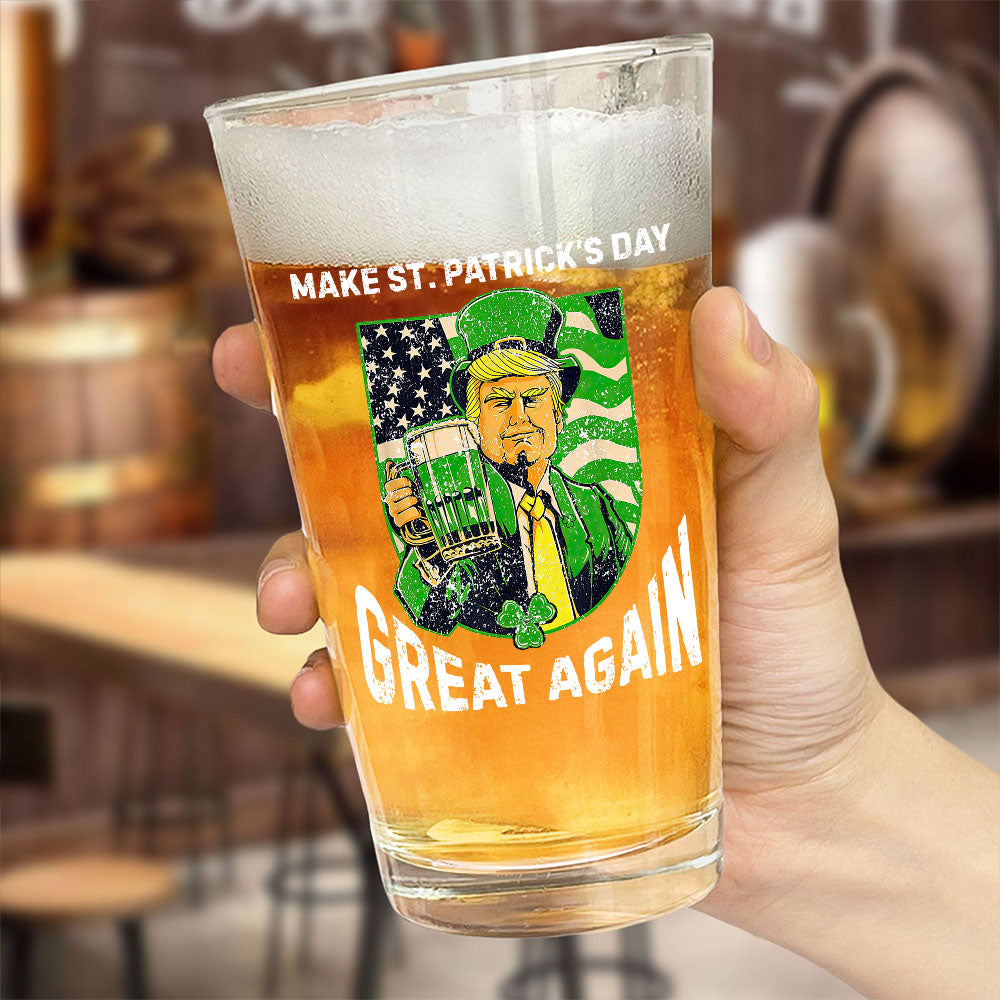 Celebrate St. Patrick's Day with a touch of humor and a cold beverage in hand! Our Donald Trump Make St. Patrick's Day Great Again Beer Glass makes the perfect gift for beer lovers. Cheers to a great Irish Day and make it even greater with this funny and unique beer glass.
